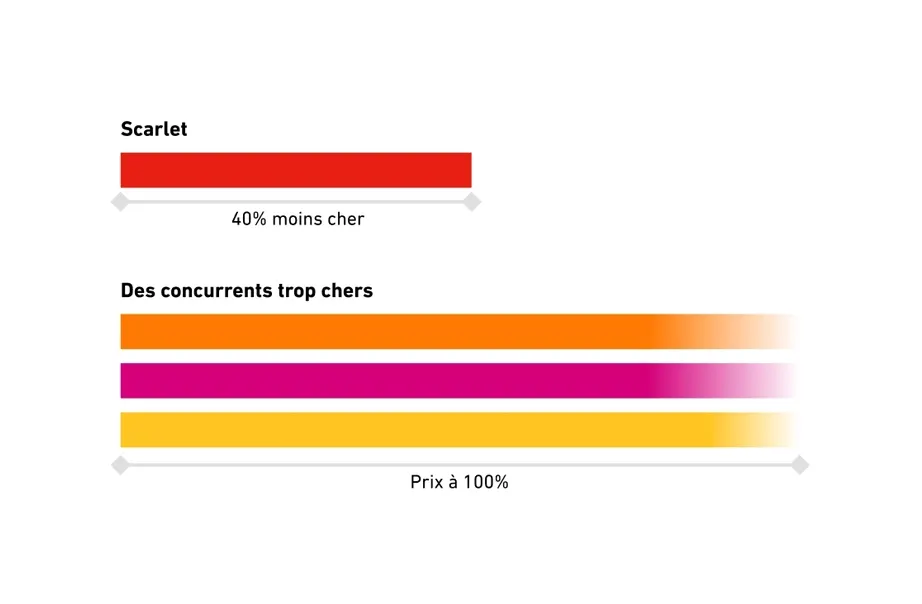 Avec Scarlet, vous bénéficiez de prix jusqu'à 40 % inférieurs à ceux des grands opérateurs. Le choix est vite fait, n'est-ce pas?